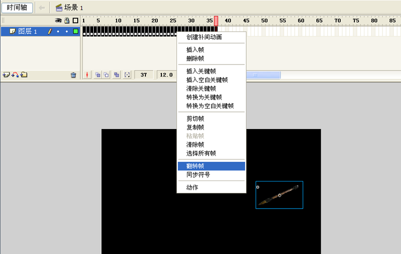 8、按住shift键选择所有的帧,右键单击从下拉菜单中翻转帧,按enter键测试效果。