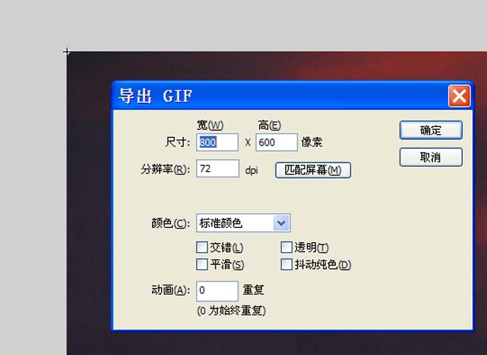 9、执行文件-导出-导出影片命令,在弹出的对话框中输入名称,接着在弹出导入gif对话框中选择默认参数,点击确定按钮。