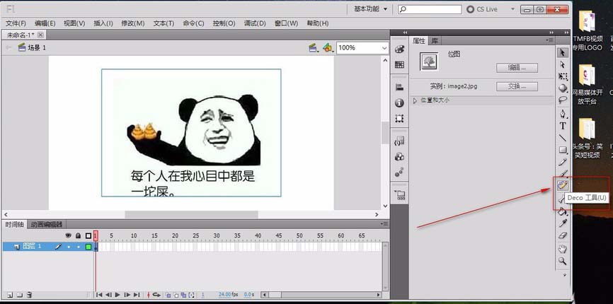 4、使用Deco工具,把对象图片背景改变。先把图片导入。