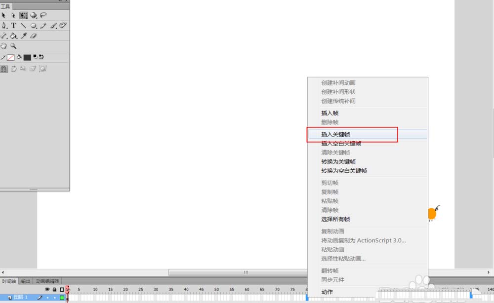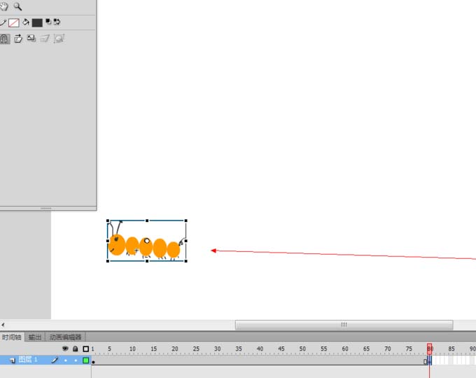 10、 然后在第80帧插入关键帧,改变毛毛虫的位置,