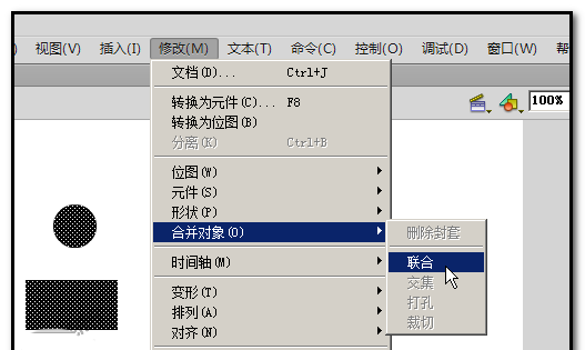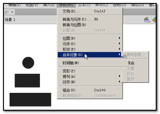 3、顺序点:修改-合并对象-联合,三个图即组合在一起。