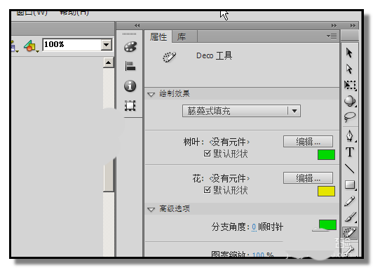 3、选取Deco工具后,工具栏右边这里即显示出了该工具的属性面板。