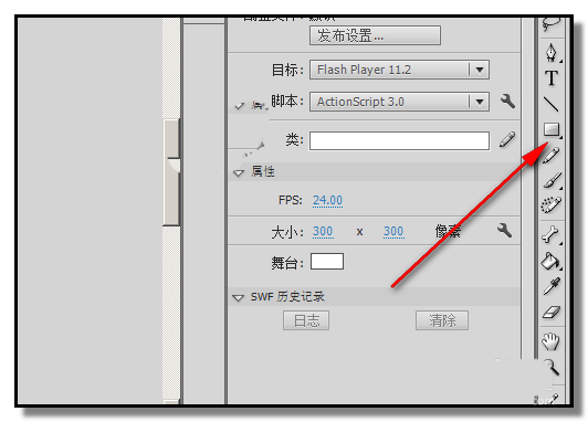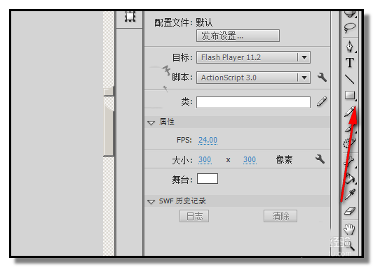 2、FLASH CS6 的工具栏在界面的右侧这里,我们在工具栏中找到:矩形工具
