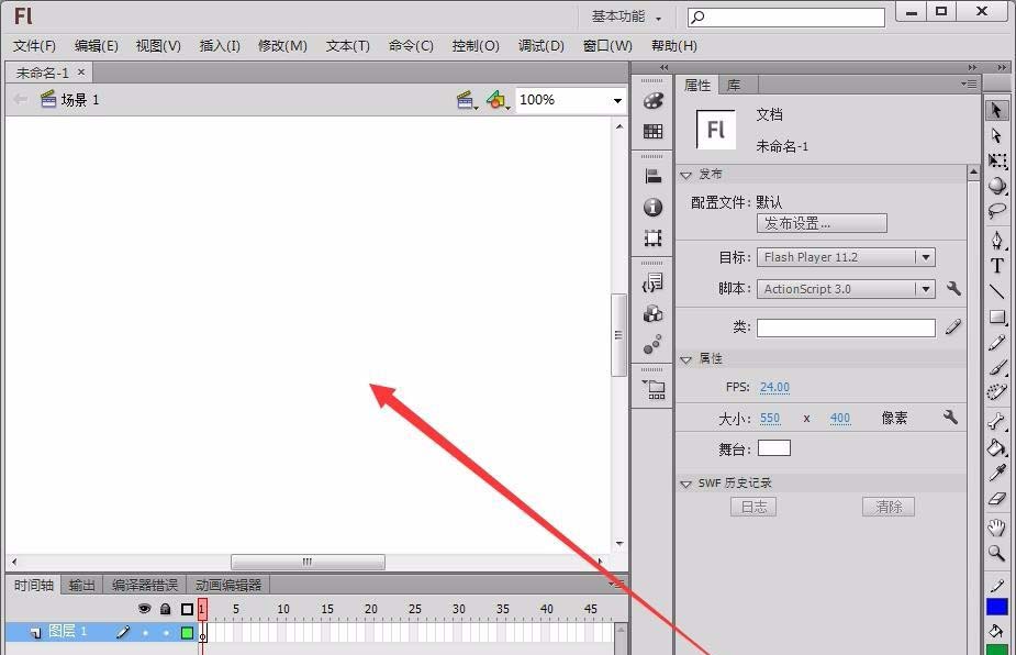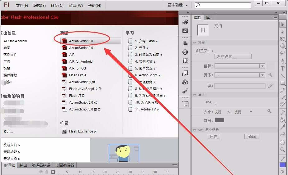 1、打开Flash软件,选择“ActionScript3.0”,新建一个空白文档。