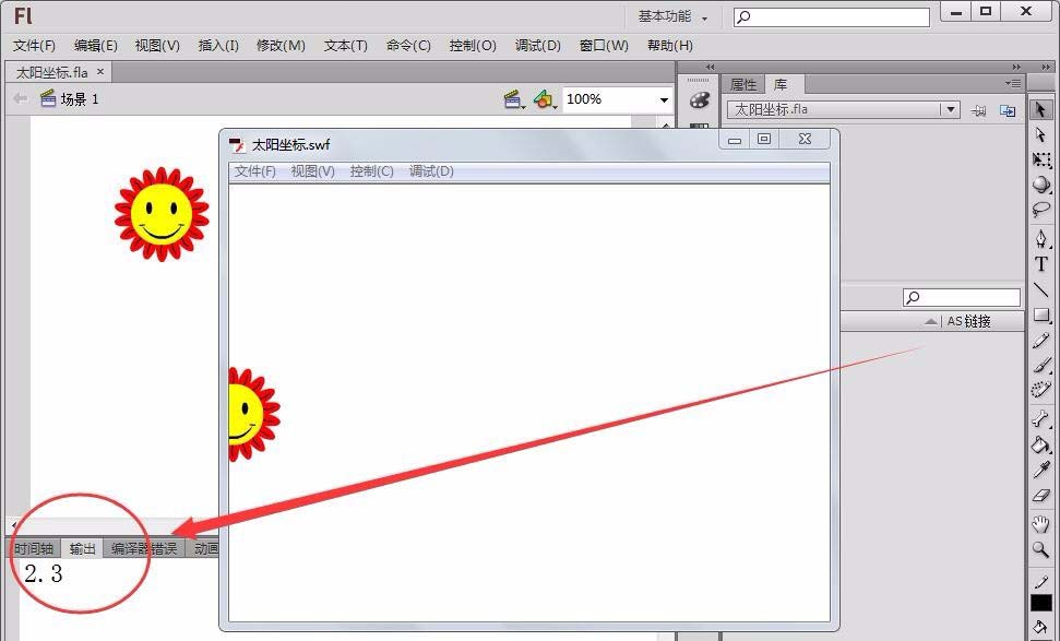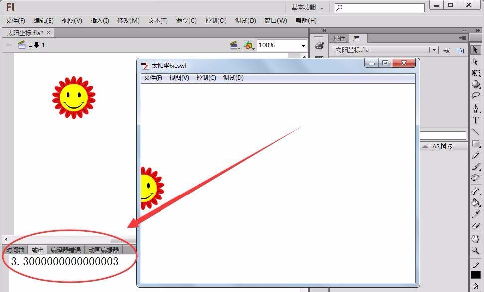 9、测试程序,从测试的结果可以看出,相加后的数值与两数相加的和“3.3”不同。在Flash中,整数计算没有误差,但浮点数计算总会出现误差,所以在使用“==”判断时值为“false”。