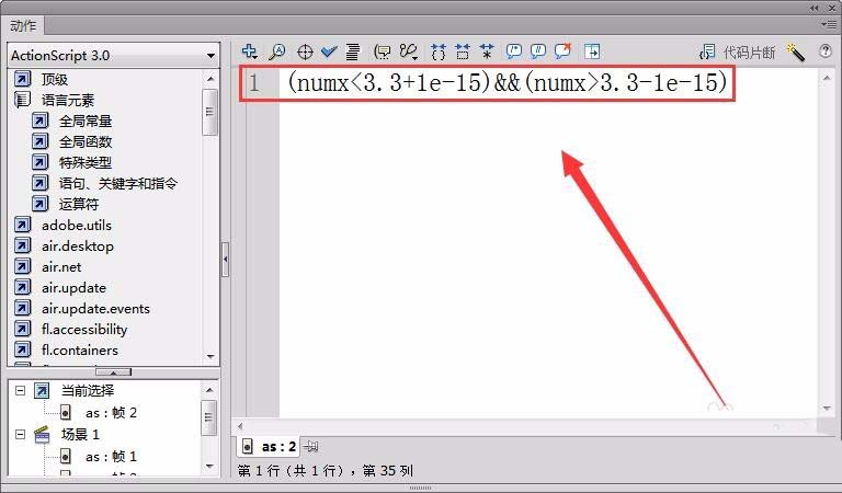 10、Flash中,对于浮点数,不能用“==”判断两个数是否相等,如果是循环,要用大于、小于。如果一定要判断浮点数相等的话,要求两数之间差别很小,而不是相等,应写成如下形式。