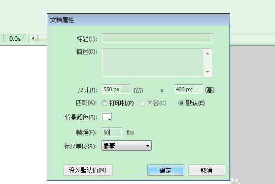 1、打开FLASH软件,新建一个FLASH文档,修改属性;