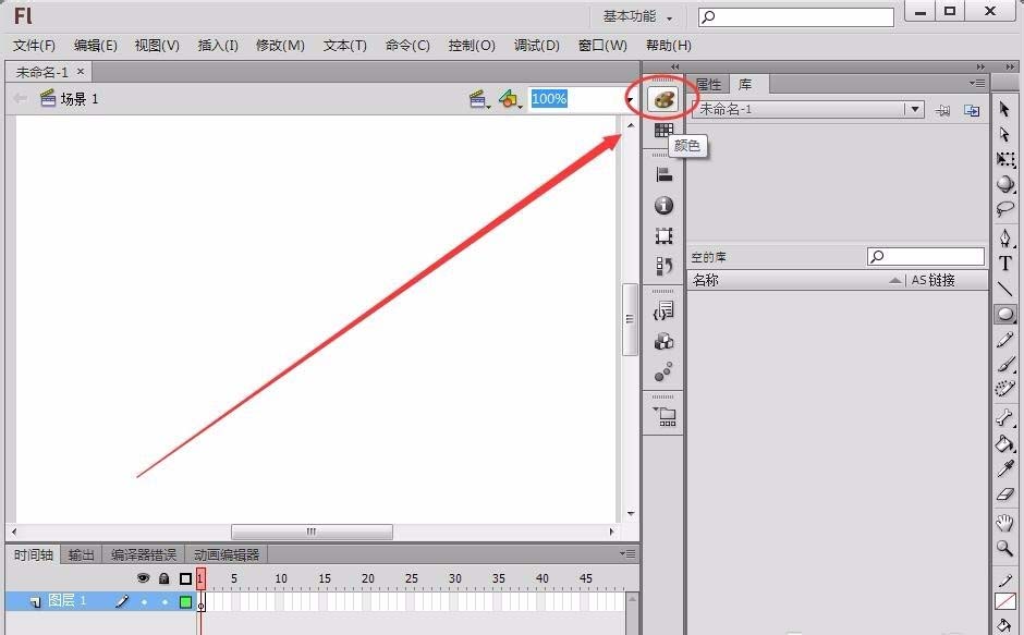 1、单击“开始”中的Flash图标,打开软件,新建一个空白文档。