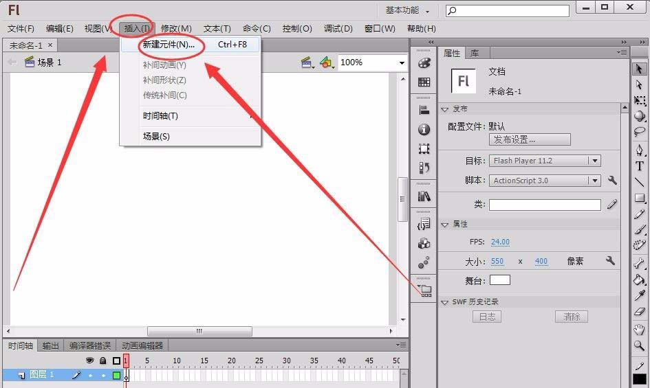 1、打开Flash软件,选择“ActionScript3.0”选项,新建一个空白文档。