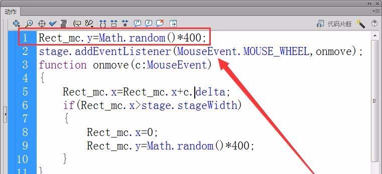 5、首先,设置影片剪辑元件的Y轴坐标,用随机数函数random产生随机坐标值。