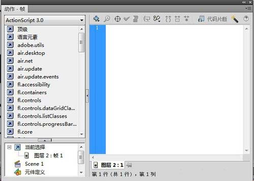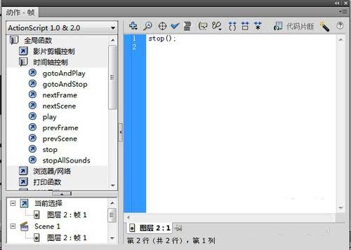 6、先是在上方我们选择ActionScript 1.0&2.0的选项。这个是比较适合于不是专业制作动画的用户来进行命令的编辑的