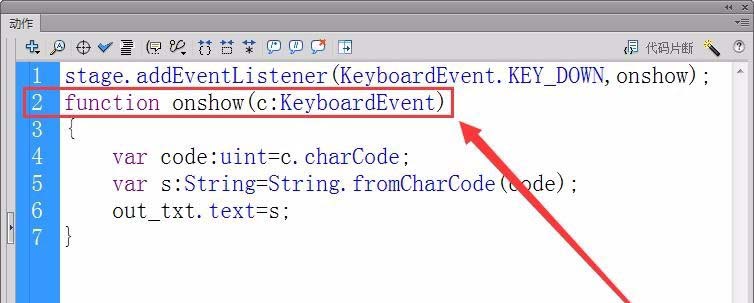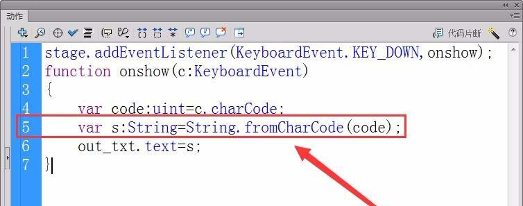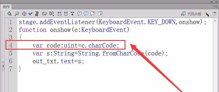 7、在函数中用charCode方法获取按下的键的键值,定义一个变量code来保存键值。
