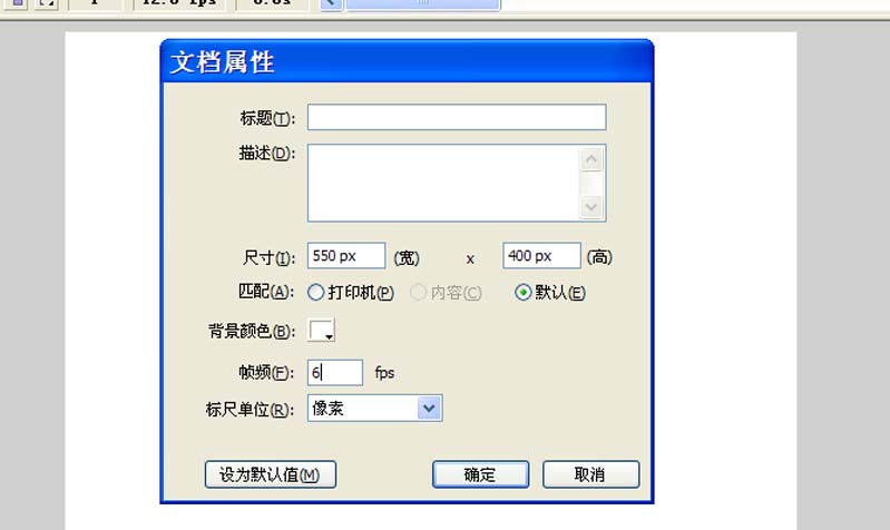 1、首先启动flash8,新建一文档,大小设置为550*400,帧频为6fps,背景颜色为白色。