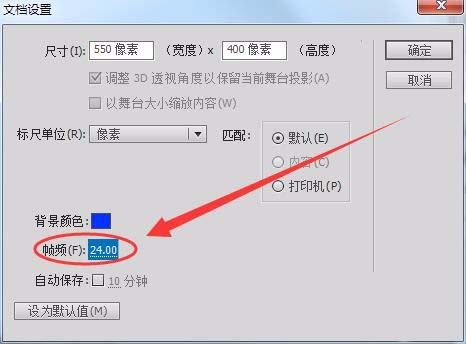 6、“自动保存”后的选项,可以设置Flash每次自动保存的时间间隔,默认值为10分钟。