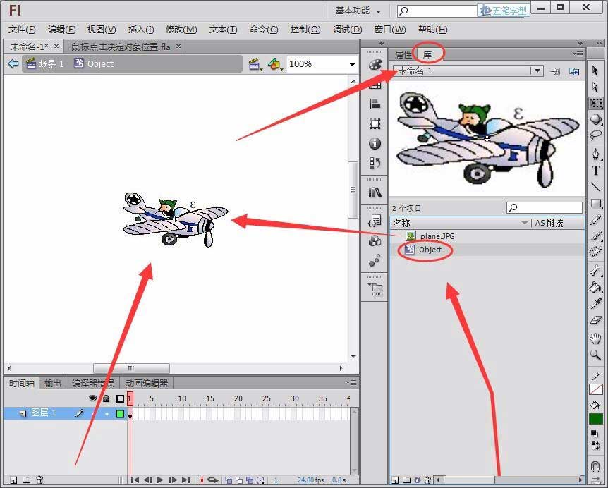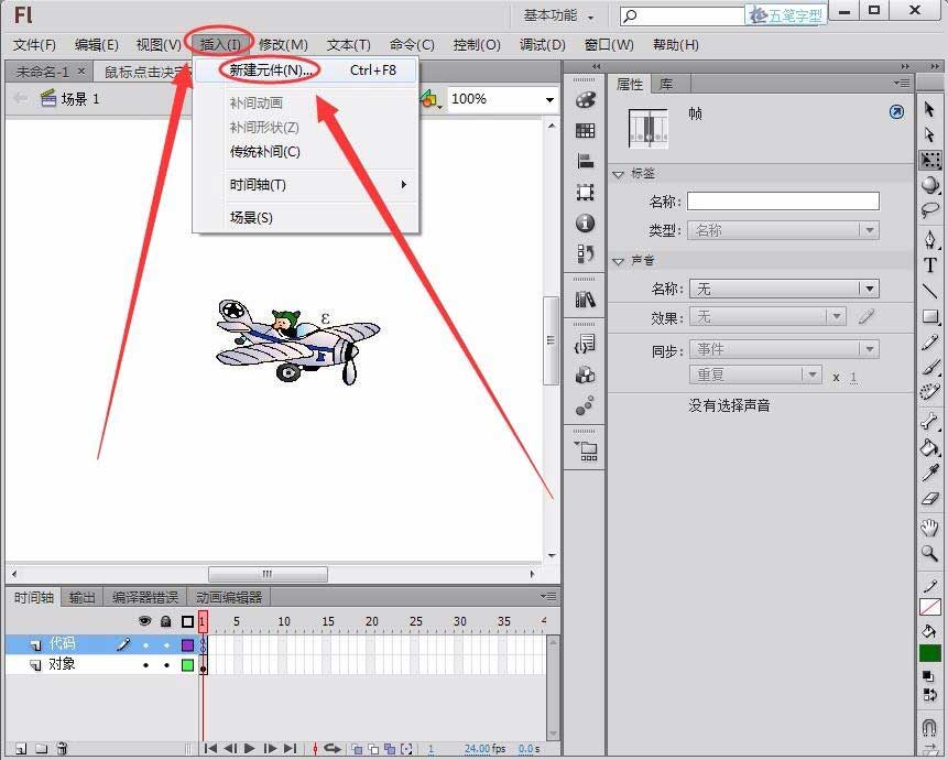 2、单击“插入”---->“新建元件”,插入一个名为“Object”的影片剪辑元件,在元件编辑窗口插入上一步导入的图片。