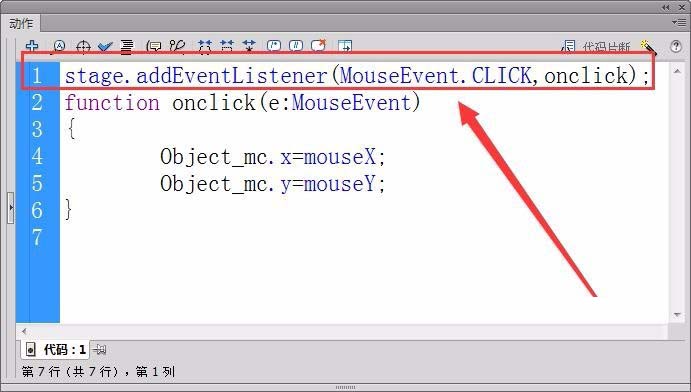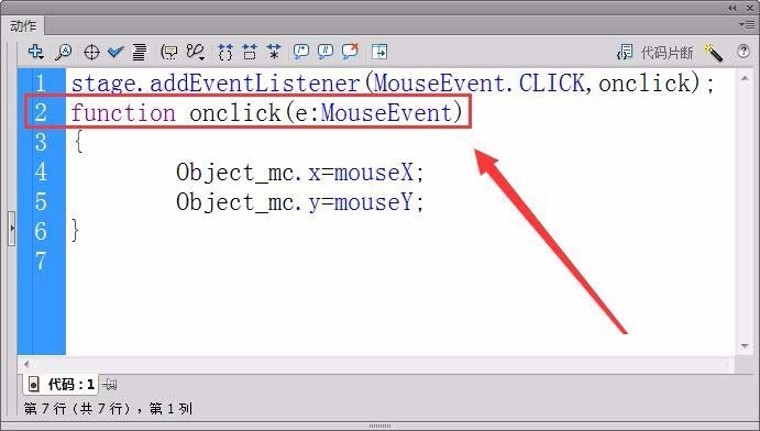 5、首先,注册舞台的鼠标单击事件的侦听器,接收者函数为“onclick”。