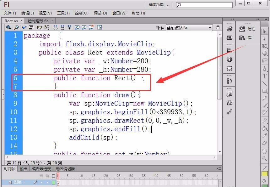 flash中想要自定义一个类,调用它方便的在Flash中绘制矩形,该怎么实现呢?下面我们就来看看详细的教程。