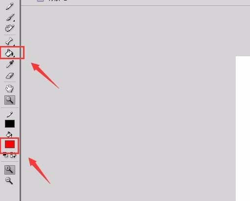 6、绘制好福字之后我们再在工具箱内找到颜料桶工具,然后将填充色设置为红色,如图所示: