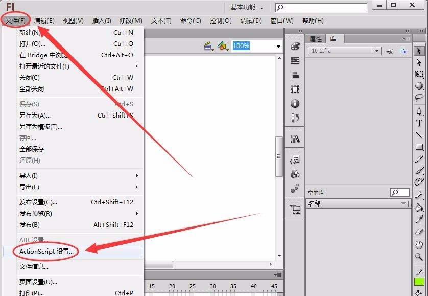 方法一:单击“文件”---->“ActionScript设置”,打开“高级ActionScript3.0设置”窗口。
