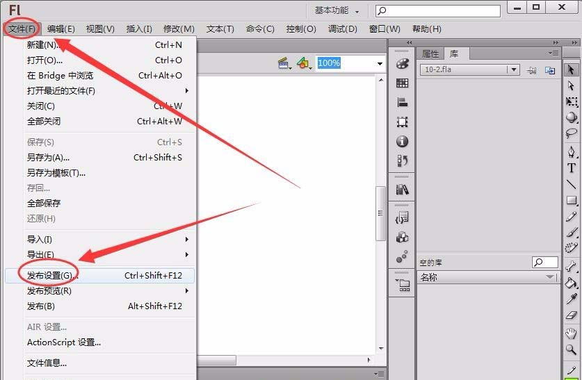 方法二:单击“文件”---->“发布设置”,单击“脚本”后的按钮,打开“高级ActionScript3.0设置”窗口