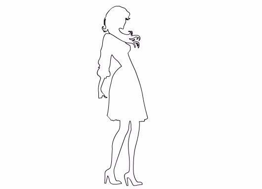 7、使用颜料桶工具我们为刚刚绘制的美女填充上黑色,这样我们的美女剪影就绘制好了,如图所示: