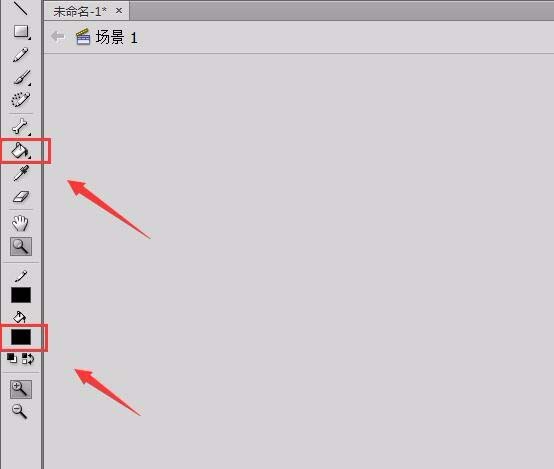 6、再在工具箱内找到颜料桶工具,并设置填充色为黑色,如图所示: