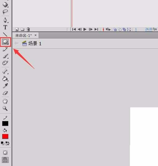 2、打开flash之后我们在工具箱内找到椭圆形工具,如图所示: