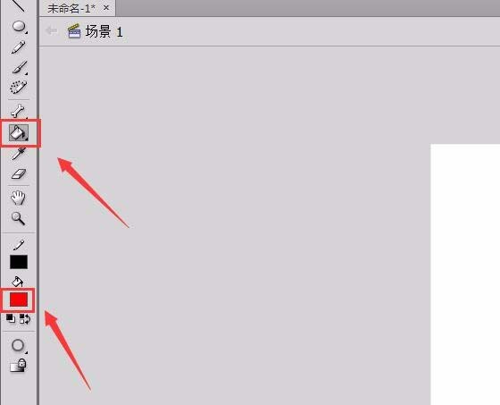 8、再在工具箱内找到颜料桶工具,并调节其颜色为红色,然后依次在游泳圈上填充红色和蓝色,这样我们的游泳圈就绘制好了,如图所示: