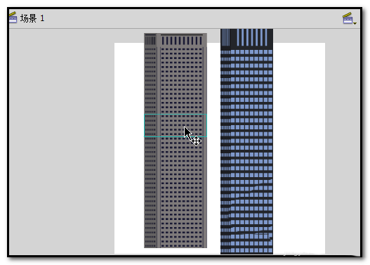6、然后,在舞台刷出建筑物。鼠标点住舞台底部往上拉,可以拉出一栋建筑物。