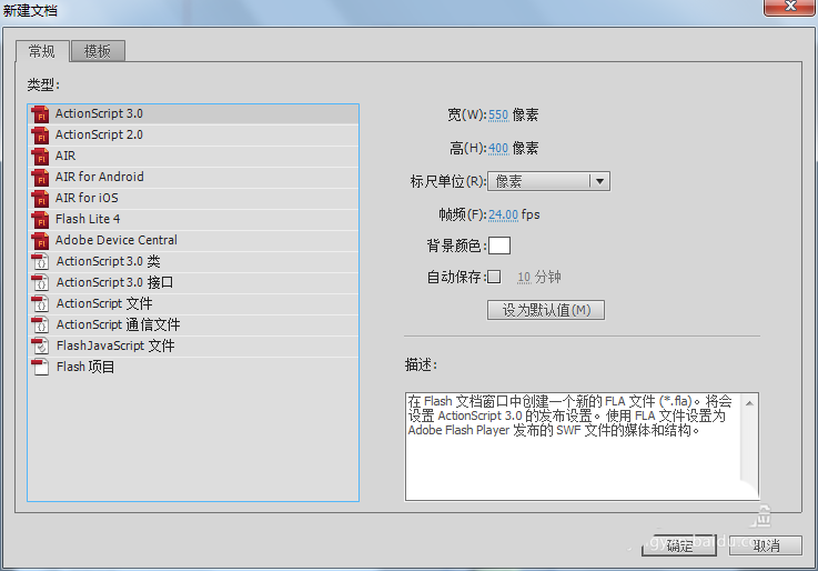 1、打开flash软件,选择文件新建,新建一个flash项目。在弹出的新建flash项目窗口中根据设计的需求进行一些相关的设置即可。