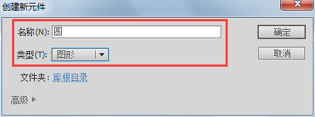2、在新建的项目中选择插入菜单,找到新建元件,在弹出的新建元件的设置窗口中,将元件名命名为“圆”,将元件类型选择为“图形”。点击确定。
