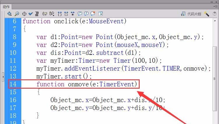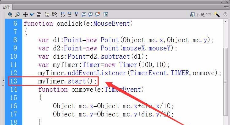 8、注册对象myTimer的Timer事件侦听器,接收者函数为onmove。
