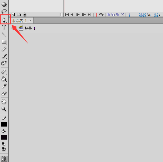 2、打开flash之后在它的工具箱内找到钢笔工具,如图所示: