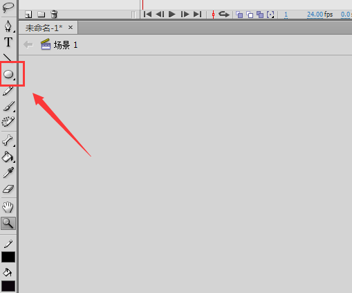 4、然后再在flash的工具箱内找到椭圆形工具,如图所示:
