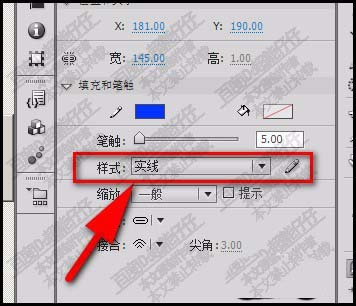 4、再在直线的属性面板中,点开样式这一项选项,弹出一列菜单