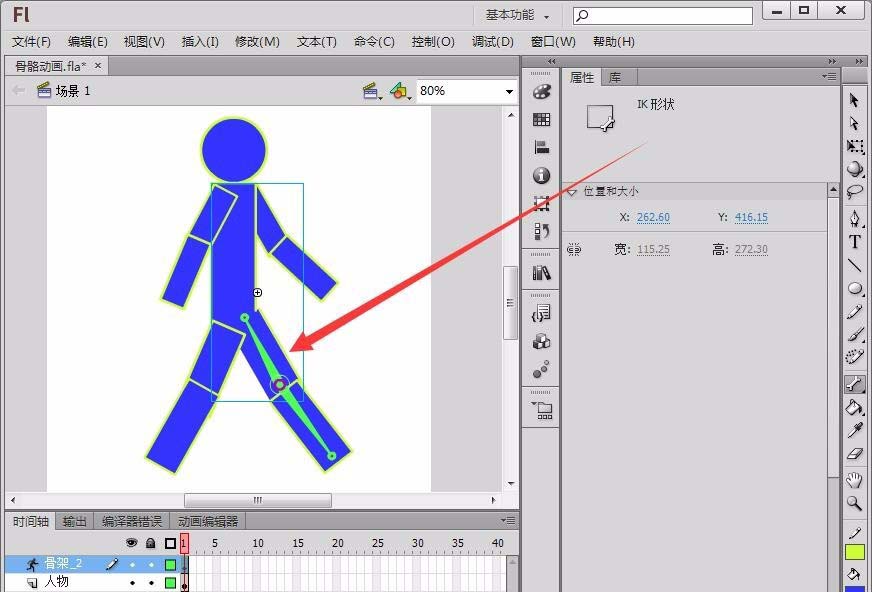 8、单击选中选择工具,拖动图形就可以让它绕着骨骼关节运动起来了。