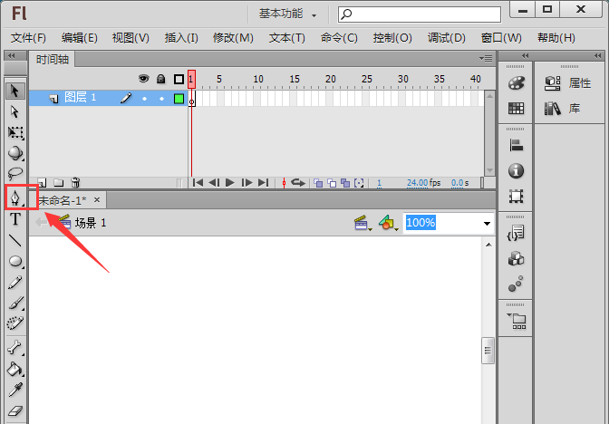 2、打开flash之后再在工具箱内找到钢笔工具,如图所示: