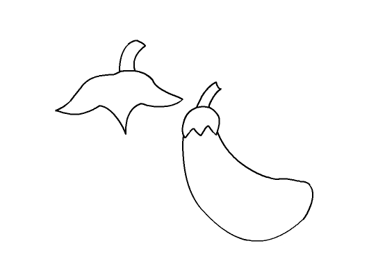 5、再在这个茄子的旁边再画出另一个茄子的茄荚及茄把,如图所示: