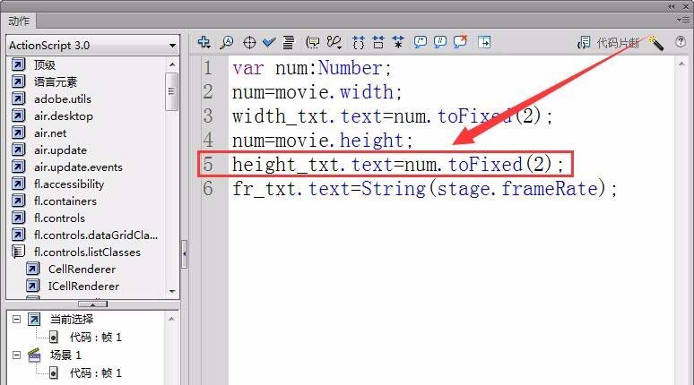 7、将视频的宽输出在舞台中,输出宽的文本框为“width_txt”。