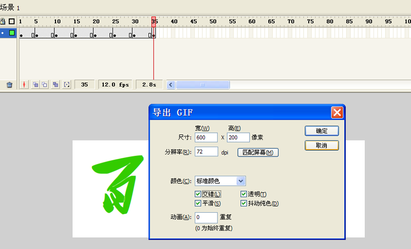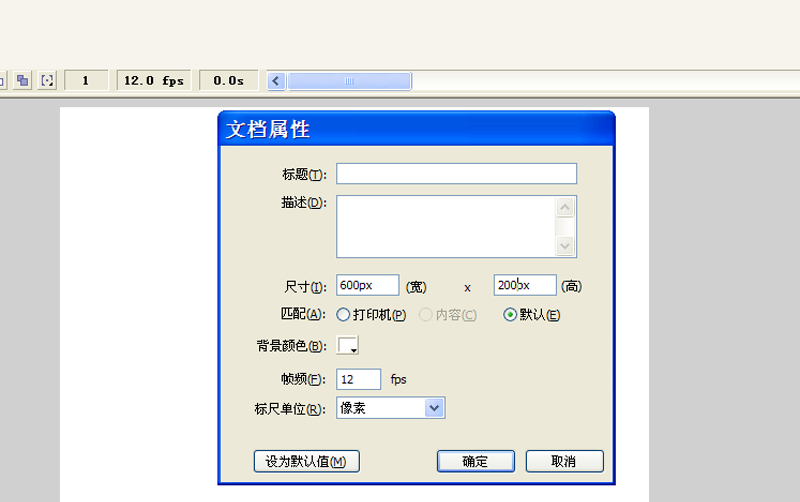 1、首先启动flash8,新建一个大小为600*200,帧频为12,背景为白色的flash文档。