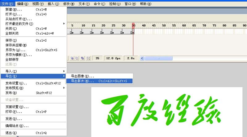 5、播放预览查看效果,执行文件-导出-导出影片命令。