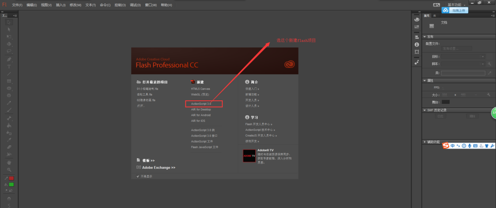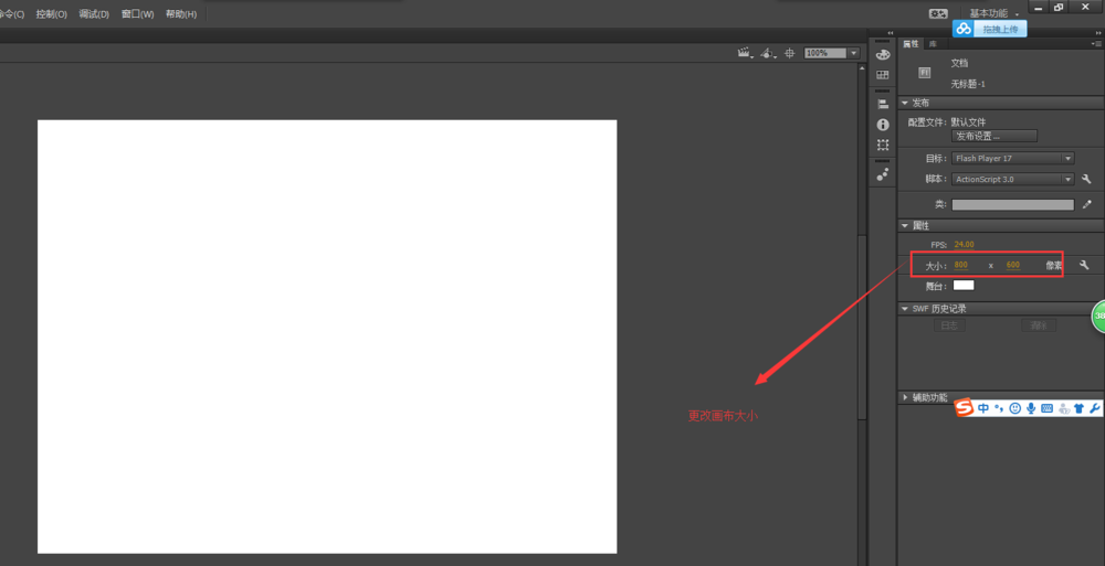 1、打开flash,新建一个动画项目,并设置画布的大小为800*600像素。