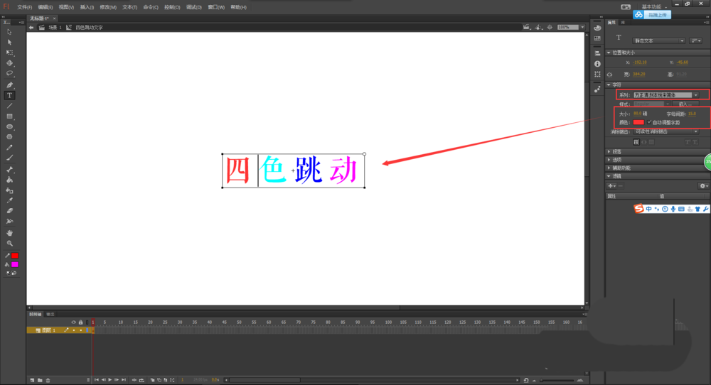 flash中想要制作跳动的彩色文字,该怎么制作彩色跳动文字的动画效果呢?下面我们就来看看详细的教程。