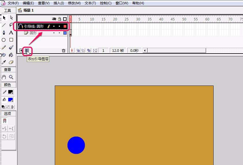 4、单击“添加引导图层”按钮,新建一个“引导线:圆形”图层。