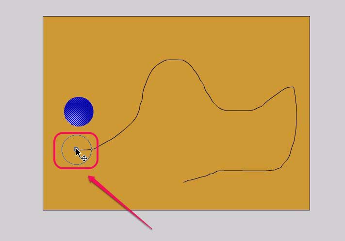 11、用鼠标拖拽圆形到曲线的另一个端点,圆形的中心点要和端点重合。