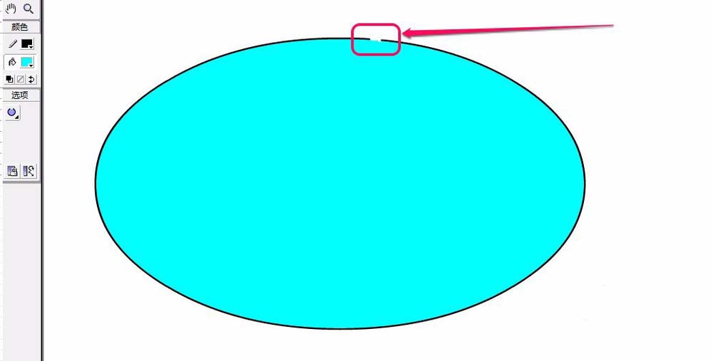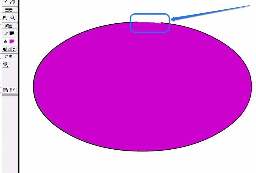 2)“封闭小空隙”:“颜料桶工具”可以对轮廓线条有少许空隙的图形进行颜色填充。如图,轮廓线有一点儿小空隙,颜料桶可以进行颜色填充。