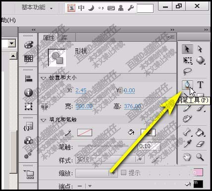 1、把图片导入到FLASH舞台中。接下来,要用钢笔工具把手机给抠出来。