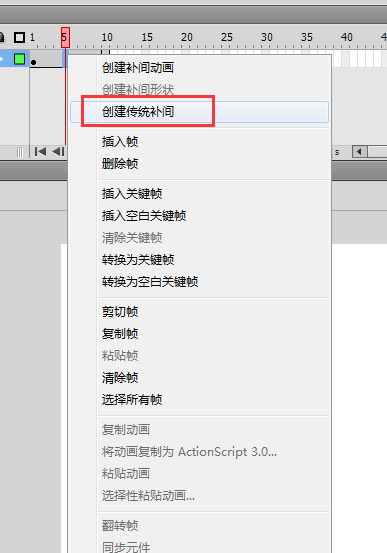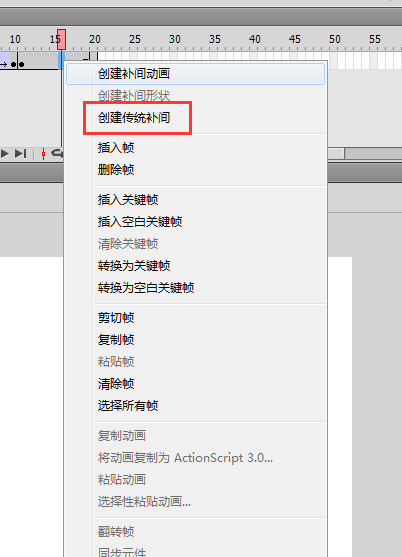 4、在时间轴窗口第十帧的位置按F6插入一个关键帧,鼠标定位在第十关键帧的位置,选择任意变形工具,将矩形的中心点移到左下角的位置,然后将矩形的宽度减少,高度适当增加,然后在第一帧与第十帧之间任意一帧位置右键鼠标选择创建一个传统补间动画。