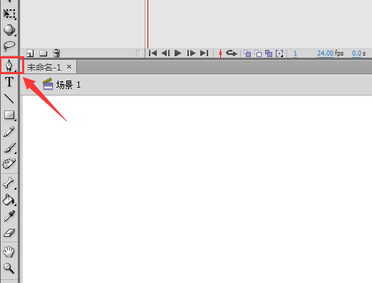 2、打开flash之后我们在它的工具箱内找到钢笔工具,如图所示:
