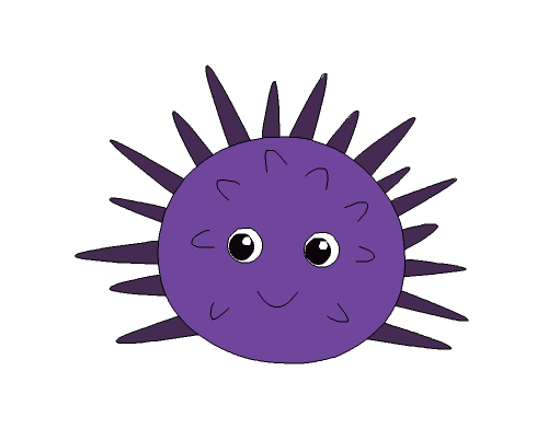 4、在海胆的身体上再画出周边的海胆刺,如图所示: